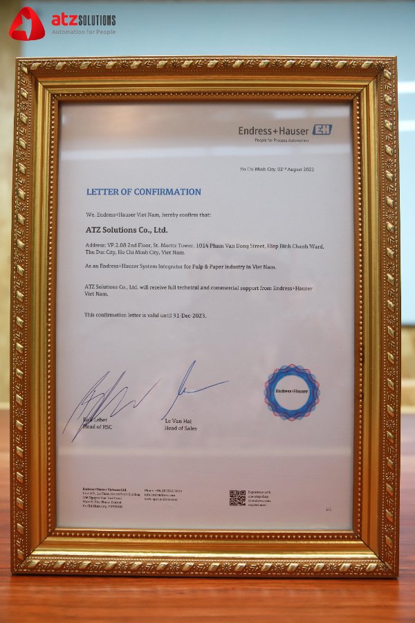 HCMC, August 19th, 2022, ATZ Solutions Co., Ltd is pleased to announce that it has officially become the System Integrator of Endress+Hauser for the pulp and paper industry in Vietnam.