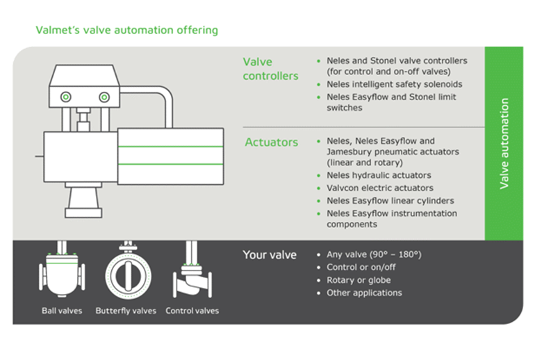Tự động hóa van, bất kể là nhà sản xuất hay loại van, đều có tiềm năng nâng cao hiệu suất quy trình và giúp bạn tận dụng tối đa các van lắp đặt. Dù là ngành công nghiệp hay quy trình, Valmet chúng tôi đều có thể mang lại gói tự động hóa toàn diện cho ứng dụng van của bạn. Chúng tôi có thể thử nghiệm toàn bộ hoặc để nhà sản xuất thử nghiệm như một phần của việc lắp đặt toàn bộ van. Dịch vụ của chúng tôi không chỉ linh hoạt, mà còn trọn gói bao gồm cả bảo trì.
