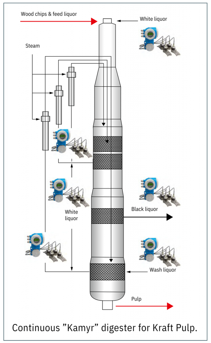 Từ đó, một thách thức lớn đối với thiết bị nấu liên tục là đo lường và kiểm soát biến động kiềm dọc theo thiết bị nấu để hòa tan lignin, nhựa, chất béo và terpen trong gỗ ra khỏi sợi gỗ. Tất cả phải được thực hiện trong lúc đạt các chỉ số Kappa mong muốn và ổn định tại đầu ra của thiết bị, đồng thời không làm giảm độ bền hoặc hiệu suất của bột giấy khi các mảnh gỗ di chuyển qua các vùng nấu khác nhau. Việc theo dõi sự di chuyển của cột vụn gỗ đã trở thành một trong những nhiệm vụ quan trọng nhất của các nhà vận hành thiết bị.